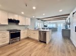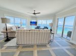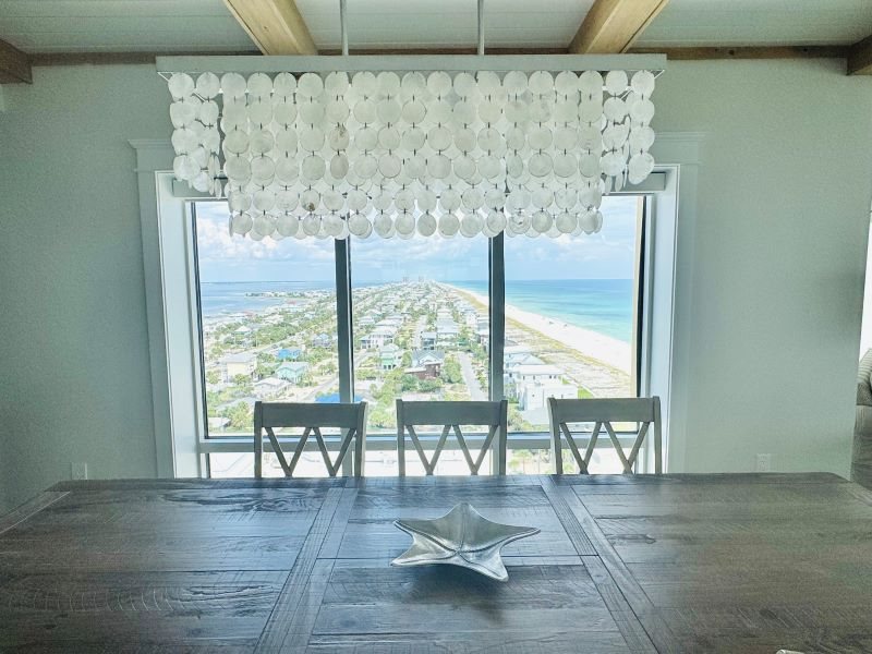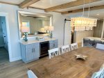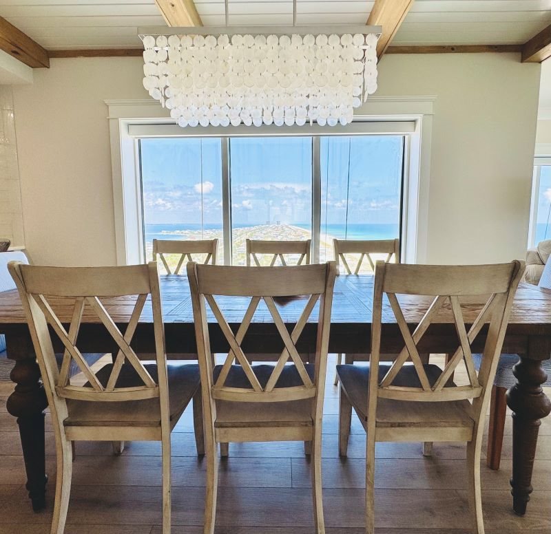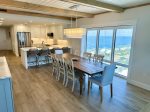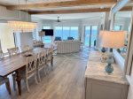 Panoramic beach views from the dining area—meals with a view! Dining table seats 8, bar seating for 4.
