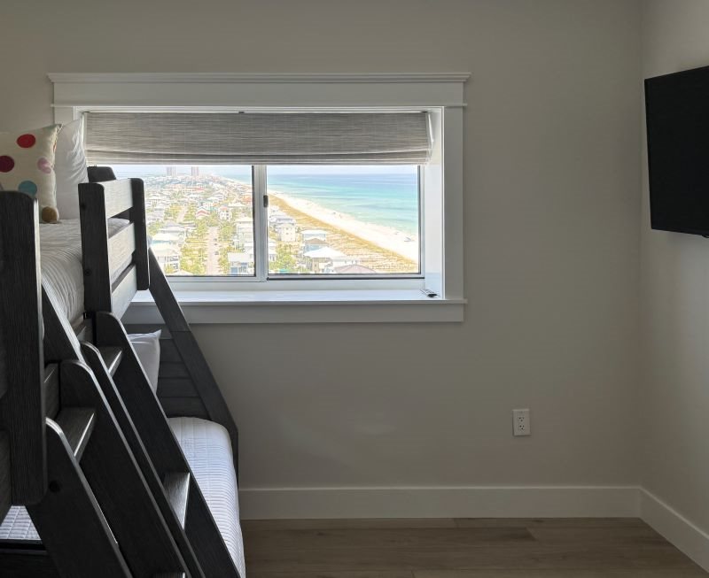 Bunk Room – Custom twin-over-full bunk beds with beach view, Smart TV